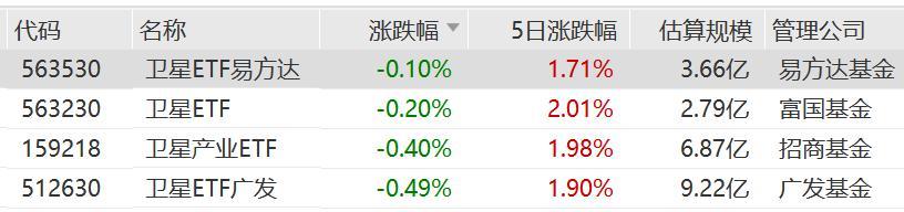 卫星ETF、卫星产业ETF、卫星ETF易方达、卫星ETF广发今日小幅下跌,近5日上涨。