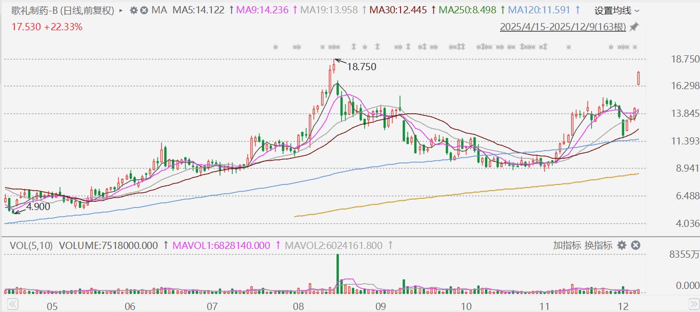 歌礼制药-B(1672.HK)盘初拉升涨近23%,报17.6港元,股价创8月18日以来新高。消息面上,公司昨晚公布,口服小分子GLP-1药物ASC30在肥胖或超重受试者中进行的美国13周II期研究显示经安慰剂校正后的体重下降达7.7%,且胃肠道耐受性更佳。歌礼指,评估口服小分子GLP-1受体(GLP-1R)激动剂ASC30治疗肥胖症的13周II期研究(NCT07002905)取得积极的顶线结果。