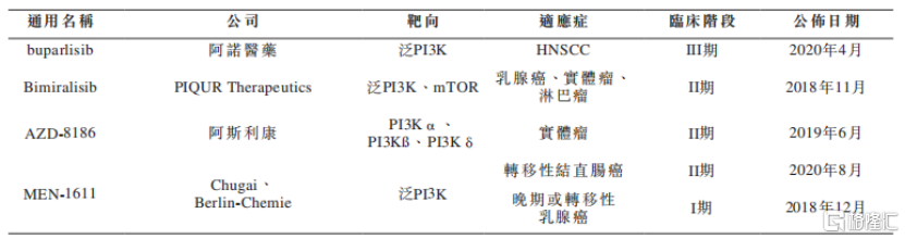 图表二:全球治疗实体瘤的泛P13K抑制剂临床进展