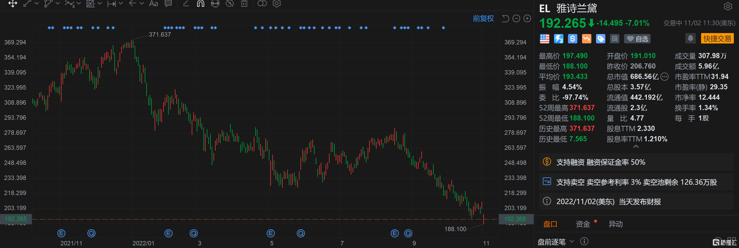 美股异动 | 雅诗兰黛(EL.US)跌超7% Q2利润指引远低于预期 下调2023财年业绩业绩指引