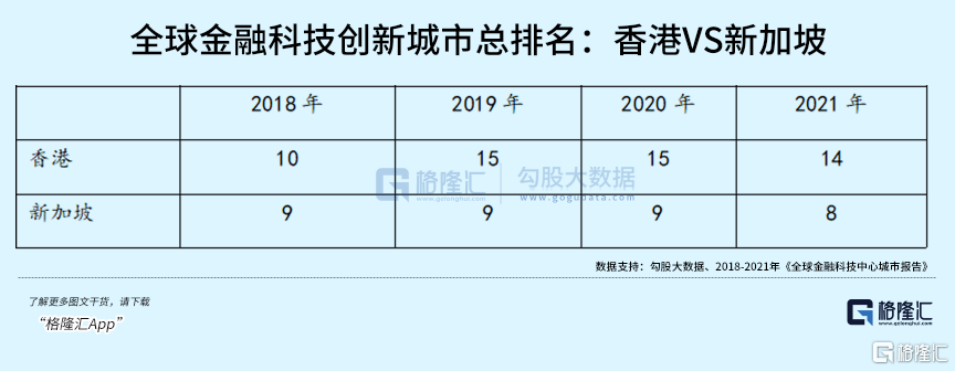 除此之外,在金融和金融科技领域,新加坡综合竞争力和地位持续提升,相较之下,香港却渐显颓势,特别是金融科技领域。