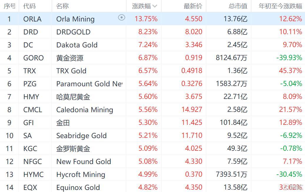 美股异动 | 黄金板块大涨 国际金价延续近期反弹势头