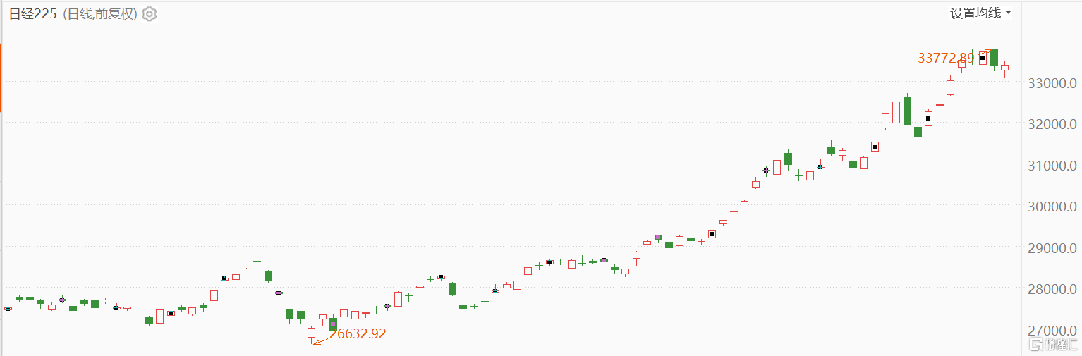 受伯克希尔增持5大商社的利好消息影响,今日日本商社股领涨,三菱商事(8058)涨3.72%,伊藤忠商事(8001)涨1.64%,丸红(8002)涨1.87%,三井物产(8031)涨3.31%,住友商事(8053)涨1.44%。东京海上控股(8766)跌5.09%,消息上,日本金融厅向东京海上日动火灾保险公司等4家日本大型保险公司发出强制报告命令,调查4家企业是否互相勾结设定同一保险费标准给日本东急集团。罗姆半导体(6963)涨3.11%,今日宣布与德国汽车部件厂商Vitesco Technologies签下供应碳化硅半导体的长期合约。