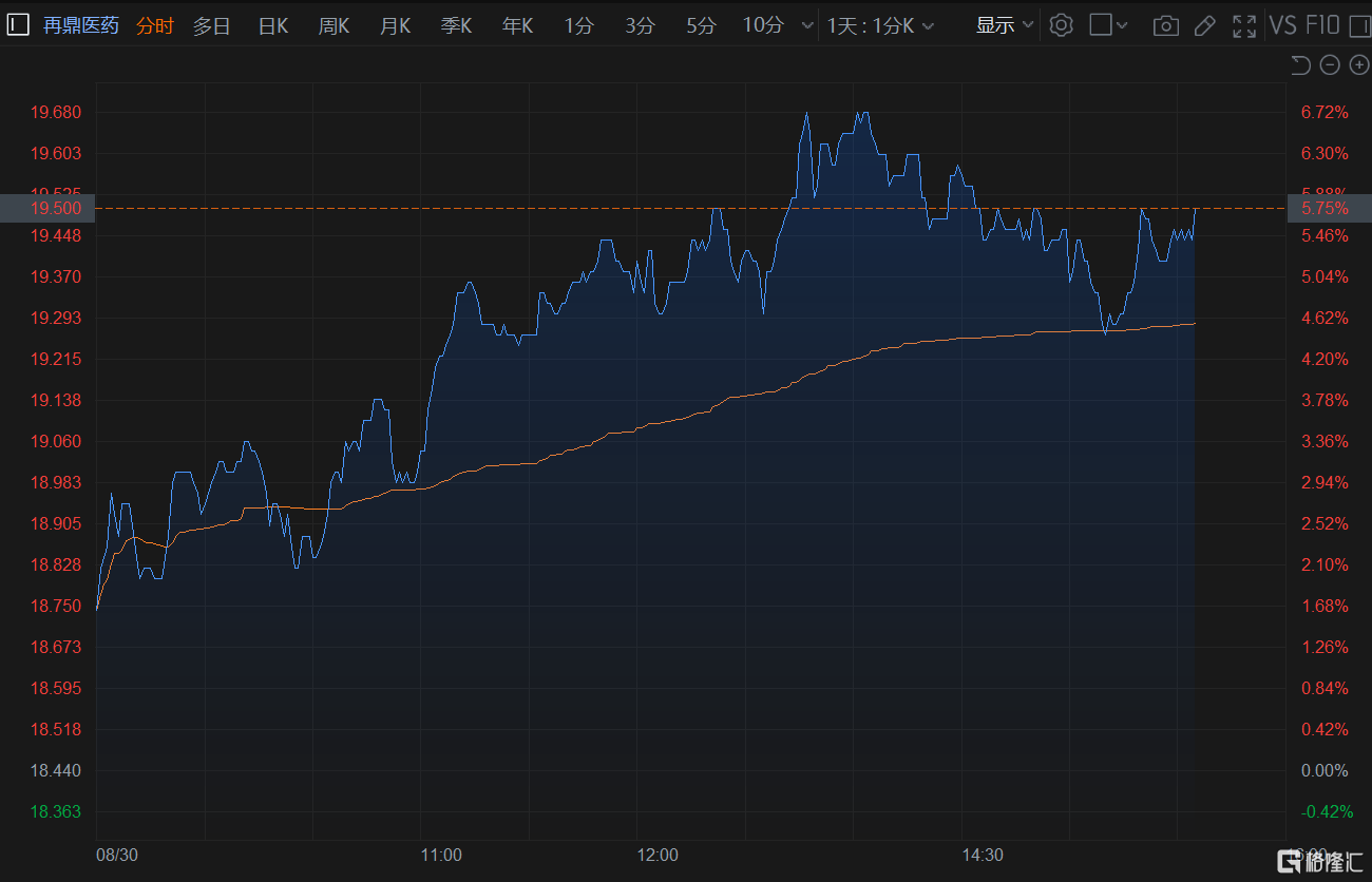 再鼎医药(9688.HK)拉升一度涨至7%,现报19.5港元,总市值192.7亿港元。公司上半年录得总收入增加38.7%至1.32亿美元,亏损净额减少22.8%至1.7亿美元。其中,产品收入增加40.6%至1.317亿美元。公司研发开支持续加码,同比增加4.3%至1.25亿美元。