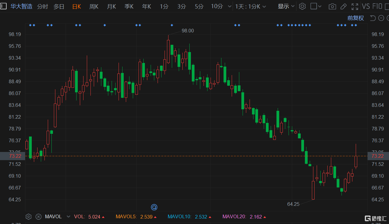 华大智造(688114.SH)拉升一度反弹逾8%,现报73.22元,总市值重回300亿元上方。公司昨晚公告,控股股东提议以2.5亿元-5亿元回购股份,回购股份的价格不超过人民币125元/股。华大智造是国内国内基因测序仪龙头企业,处于基因测序产业链上游,整体壁垒较高。