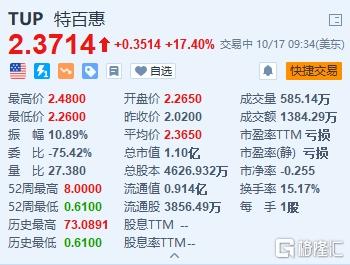 消费品公司特百惠(TUP.US)大涨17.4%,报2.37美元。公司任命Laurie Ann Goldman为新任总裁、首席执行官兼董事会董事,立即生效。董事会主席Susan Cameron表示:“现在是引入新领导层的合适时机,Laurie Ann非常适合推进我们的长期战略和加速增长。”