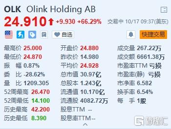 瑞典蛋白组学公司Olink Holding(OLK.US)暴涨66.29%,报24.91美元。赛默飞世尔科技公司周二表示,拟以每股26美元的价格收购Olink,较前一日收盘价溢价74%,交易价值31亿美元。