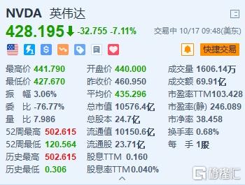 英伟达(NVDA.US)持续走低,现跌7.11%,或将创下自去年12月底以来的最大单日跌幅,报428.195美元。针对美国出口管制新规,英伟达回应称,“我们遵守所有适用的法规,同时努力提供支持许多不同行业数千种应用的产品。”