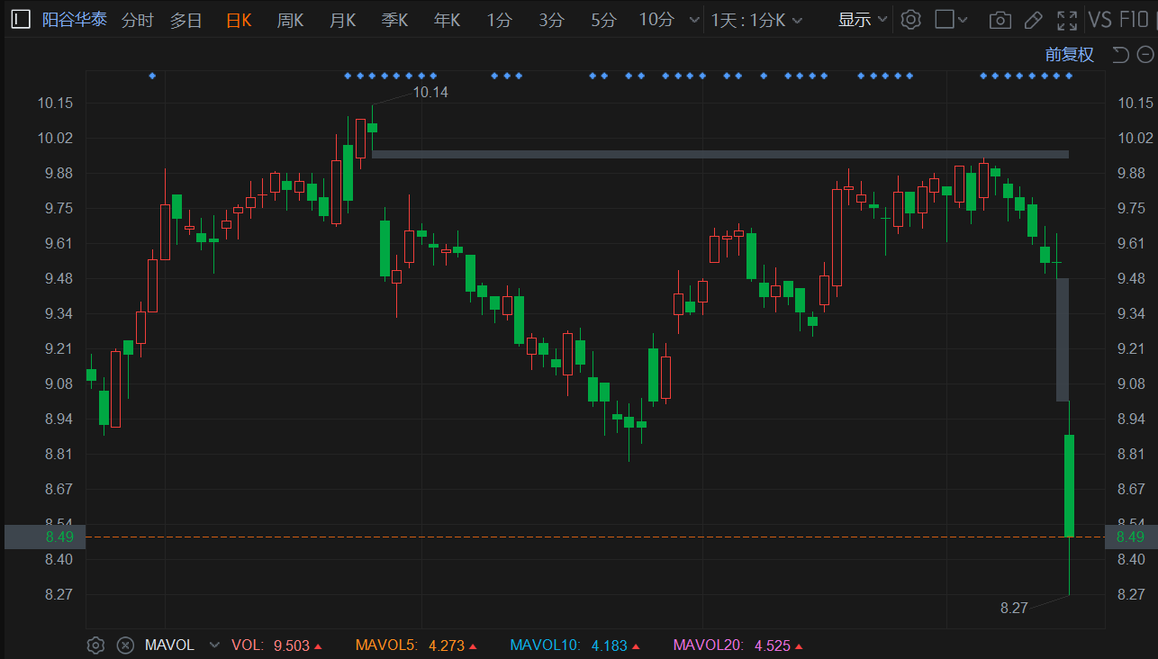 阳谷华泰(300121.SZ)现跌11%,报8.49元创18个月新低,总市值34亿元。公司上周五晚公告,第三季度营业收入9.63亿元,同比增长10.05%;归属于上市公司股东的净利润4993.34万元,同比下降66.51%。有分析称,公司近十年以来的历史财务报表,整体来看盈利不是很稳定,长期来看盈利能力优秀。