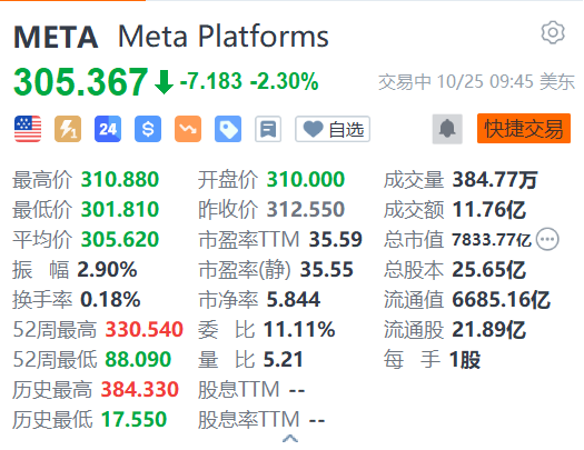 Meta Platforms(META.US)跌2.3%,报305.367美元。当地时间10月24日,加利福尼亚州等全美超40个州起诉Meta Platforms,称该公司的社交媒体平台Instagram和Facebook“利用青少年谋利,并向其灌输有害内容”。
