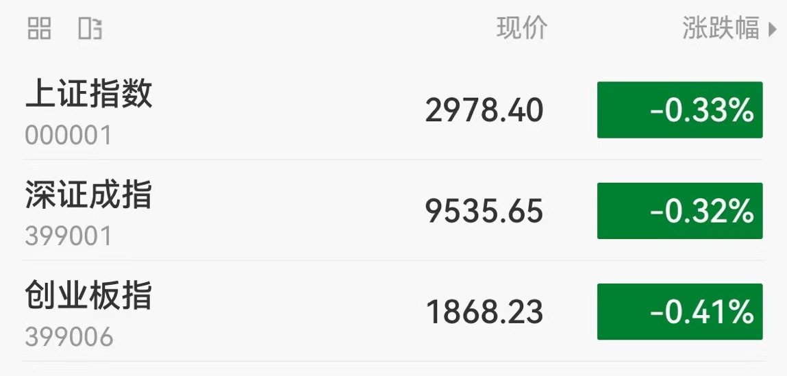 隔夜美股大跌,三大指数均创四个月新低。A股三大指数今日低开,沪指跌0.33%报2978.4点,深证成指跌0.32%,创业板指跌0.41%。宁德时代跌0.12%,格力电器涨1.47%,此前均宣布拟回购公司股份,用于实施股权激励计划或员工持股计划。中国人寿跌4.62%,前三季度净利润同比下滑47.76%至162.09亿元。盘面上,汽车整车板块涨幅居前,江淮汽车涨停,录得3连板;酒店及餐饮板块普跌,君亭酒店跌近5%;减肥药板块下挫,常山药业跌6.42%。