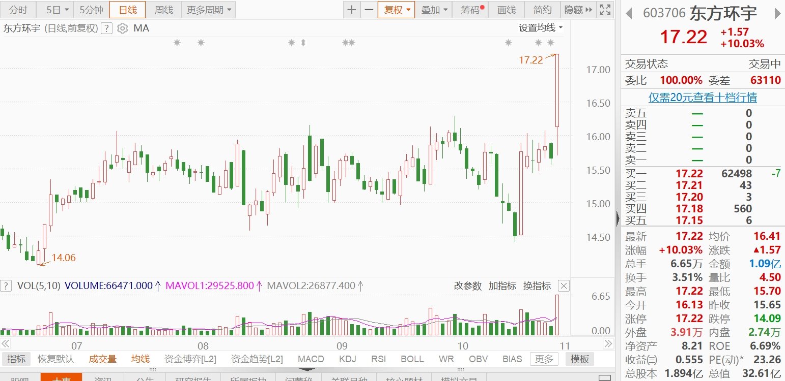 东方环宇(603706.SH)午后涨停,报17.22元,总市值32.61亿元。东方环宇近日发布三季度业绩公告,2023年前三季度公司营收约7.47亿元,同比增加17.29%;归属于上市公司股东的净利润约1.05亿元,同比增加15.12%;基本每股收益0.56元,同比增加16.67%。