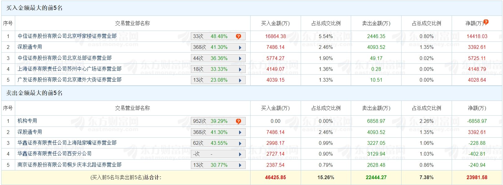 银邦股份(300337.SZ)大涨8.83%,换手率28.81%,成交额19.48亿元。龙虎榜数据显示,知名游资“呼家楼”位列买一席位,净买入1.44亿元;深股通净买入3392.61万元;一家机构净卖出6858.97万元。上榜席位全天成交6.89亿元,其中,买入4.64亿元,卖出2.24亿元,合计净买入2.40亿元。