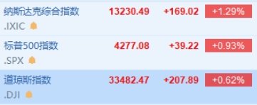 美联储暂停加息,美股高开,纳指涨1.29%,标普500指数涨0.93%,道指涨0.62%。