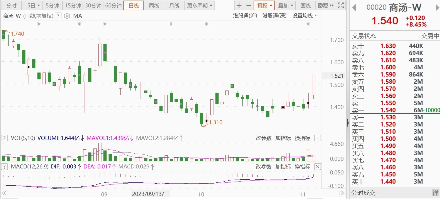 商汤(0020.HK)涨8.45%,报1.54港元,总市值515.4亿港元。消息上,被称为港股“无人零售第一股”的友宝在线上周五正式上市,其开盘后股价大涨,收盘涨40.87%,总市值为113.7亿港元。友宝在线此次IPO引入4名基石投资者,其中商汤通过SensePower认购约2722万港元。