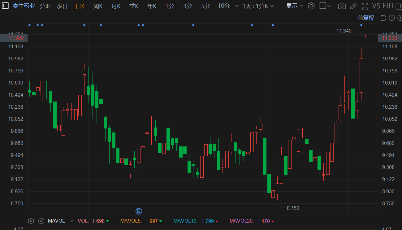 赛生药业(6600.HK)逆势拉升涨超3%,3日连涨超10%,10月底以来累计升幅近25%,现报11.34港元续刷阶段高价,总市值70亿港元。公司已与美纳裡尼集团旗下BerlinChemie AG订立许可及合作协议,授权集团根据此前美纳裡尼与Radius的总许可协议,于中国独家开发及商业化Orserdu (Elacestrant)。据悉,继今年5月获纳入MSCI中国小型股指数,继而又获纳入2项富时罗素指数。