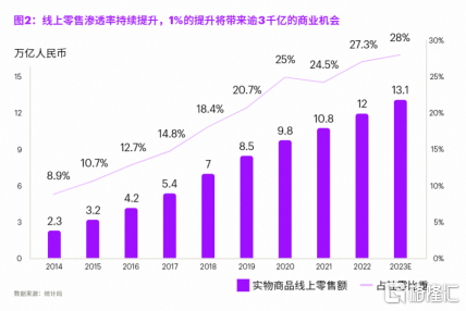 由此推算,中国社会零售年增量规模达3万亿人民币,相当于整个英国2022年社会零售额总和,显示出中国消费市场巨大的增长潜力。