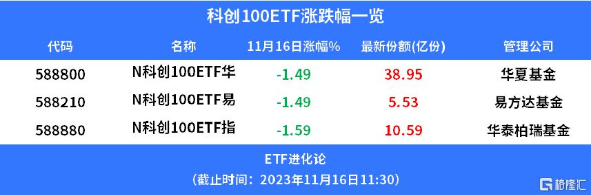 格隆汇11月16日丨科创100ETF迎来“新玩家”,从11月16日起,科创100ETF华夏、科创100ETF易方达、科创100ETF指数的第二批跟踪科创100指数的ETF正式上市交易。