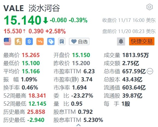 淡水河谷(VALE.US)美股盘前涨2.58%,报15.53美元。淡水河谷加拿大有限公司(VCL)与印尼国有矿业公司PT Mineral Industri Indonesia和日本住友金属矿业(SMM)已签署一份框架性协议,内容涉及VCL和SMM将淡水河谷印尼公司(PT Vale Indonesia Tbk)约14%股权售予MIND ID。该交易预计将于2024年完成。交易完成后,MIND ID将成为淡水河谷印尼公司最大股东,持有约34%股份,VCL和SMM持股比例将分别为33.9%和11.5%。
