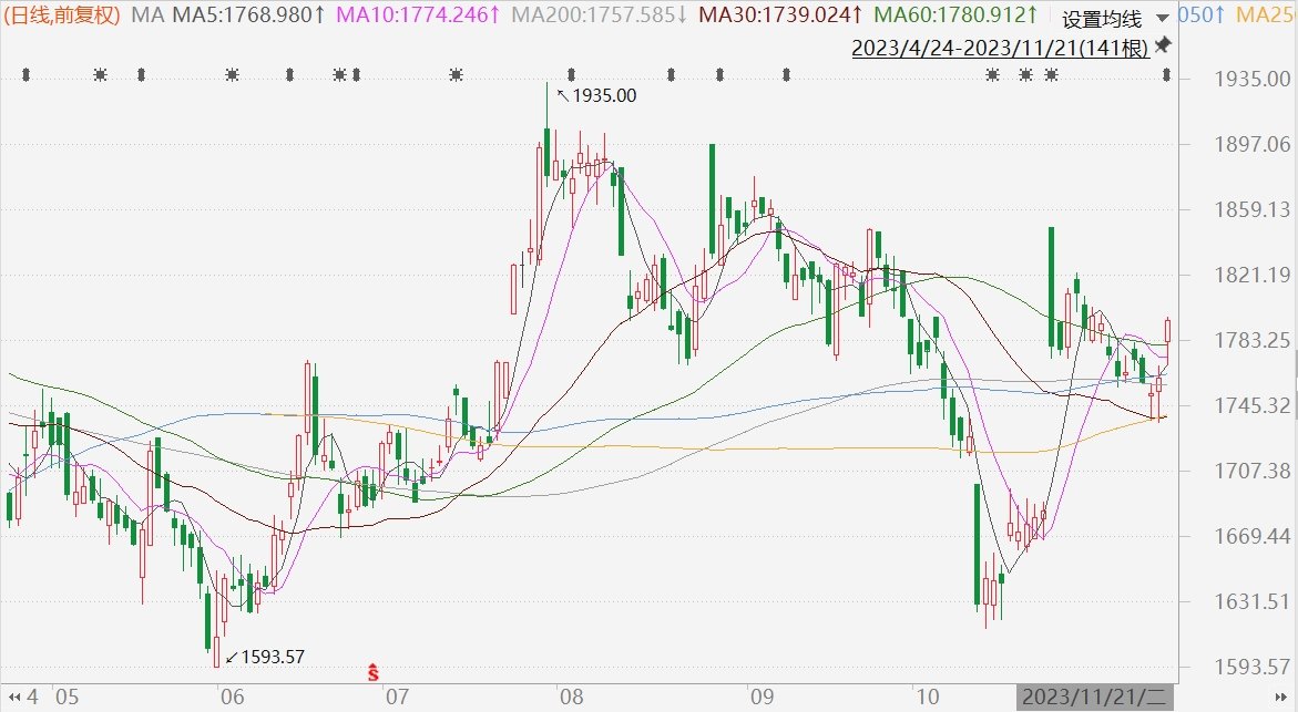 贵州茅台午后拉升,涨超2%至1798元。消息面上,贵州茅台宣布拟在2023年度内以实施权益分派股权登记日公司总股本为基数实施回报股东特别分红,每股派发现金红利19.106元(含税)。截至2023年9月30日,公司总股本为12.56亿股,以此计算合计拟派发现金红利240亿元(含税)。中金分析师王文丹等在报告中指出,近期由于市场悲观情绪,白酒板块整体有所回调,公司在此时点再次公告特别分红,提升股东获得感,有望提振市场信心,维持跑赢行业评级,目标价2486元。花旗称这是茅台在过去三周里第二次给市场惊喜,对茅台加大力度向股东返还更多现金并提升股东价值持积极态度。中金认为茅台特别分红有望提振市场信心。花旗分析师Xiaopo Wei等在报告中指出,贵州茅台仍是中国白酒板块的首选,目标价2272元。