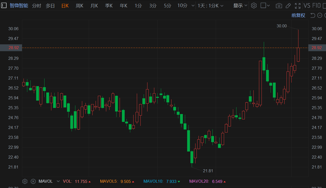 智微智能(001339.SZ)盘中拉升涨超7%,6日连涨近15%,最高报30元续创阶段高价,总市值73亿元。消息上,日前公司与龙芯中科的合作以及持续推进工业智能板块的发展将对公司的未来发展起到积极作用。太平洋研报认为,此次合作将给公司带来积极变化,并预测2023-2025年公司的净利润将持续增长,因此维持对智微智能的“买入”评级。