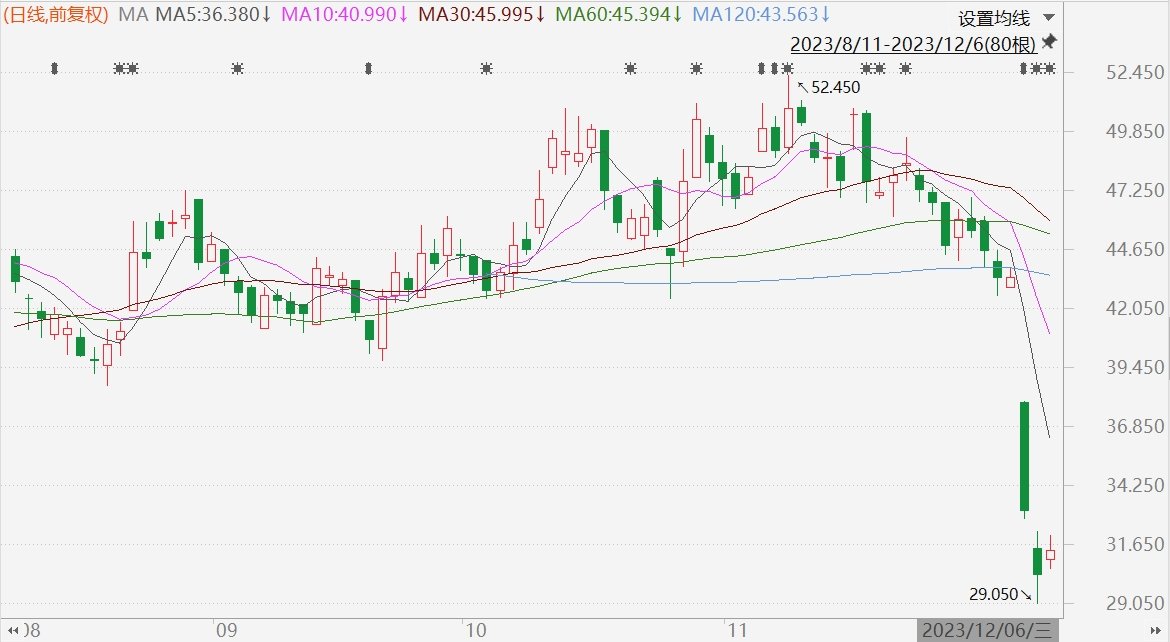 因下调业绩指引连续两日大跌,累跌30%的药明生物(2269.HK)今日盘初反弹,一度涨5.6%至32.05港元。消息面上,公司最新公告,根据购回授权,公司获准于香港联交所购回最多4.248亿股股份,占于股东周年大会当日已发行股份总数的10%。公司董事会谨此宣布,于2023年12月5日,其已议决动用购回授权,以不时在公开市场上以不超过6亿美元总价格购回股份。