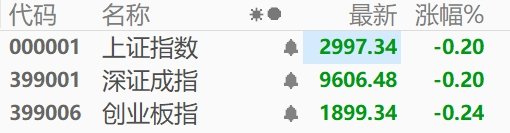 中央经济工作会议强调9大举措做好明年经济工作。A股三大指数今日低开,沪指跌0.2%报2997点,深证成指跌0.2%,创业板指跌0.24%。盘面上,零售商店板块持续活跃,南宁百货竞价涨停;教育板块走强,中国高科高开逾8%;多模态AI概念持续活跃,苏州科达5连板;计算机设备、珠宝首饰及家用轻工等板块涨幅居前。另外,游戏板块走低,天舟文化领跌;短剧概念、HBM概念及房地产服务等板块跌幅居前。
