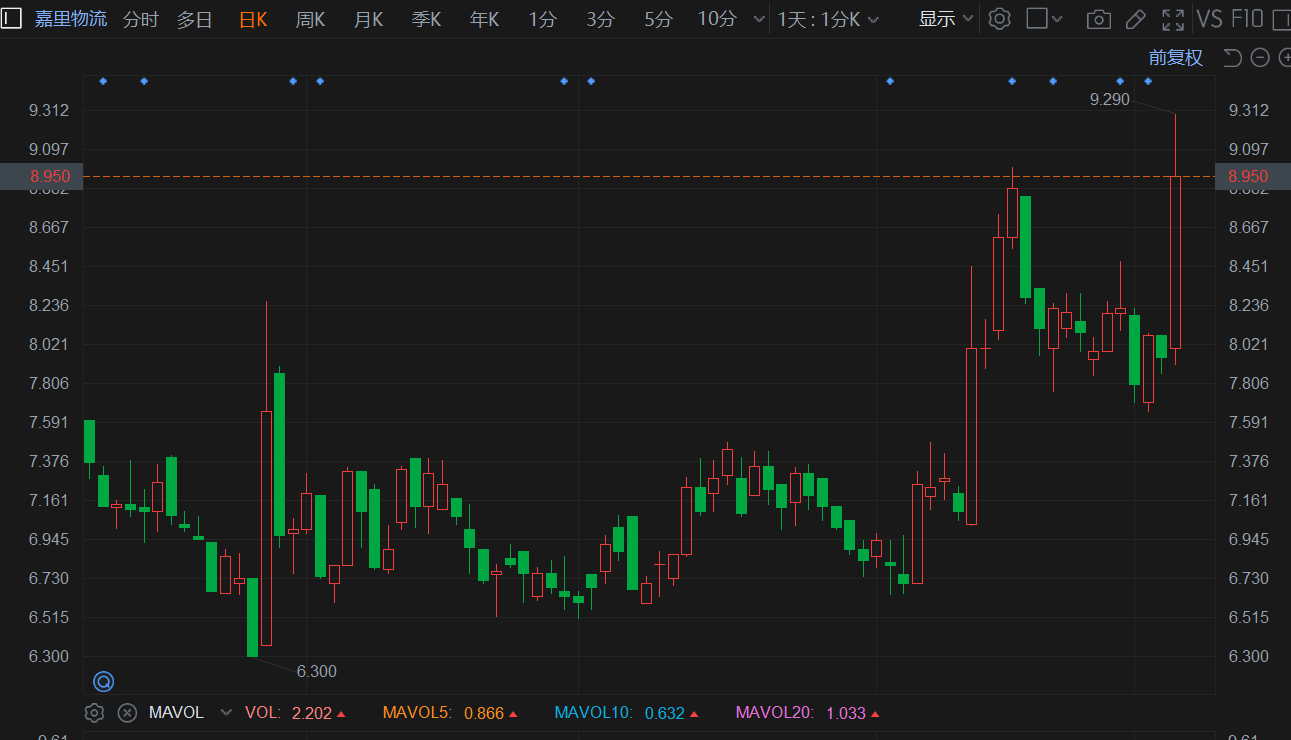 嘉里物流(0636.HK)盘中一度大涨近17%,最高报9.29港元刷新阶段高价,总市值162亿港元。摩通发表报告,将嘉里物流评级由“中性”升至“增持”,上调今明两年盈测介乎14%至16%,目标价相应由9港元上调至11港元。该行指,去年受运费大幅回调影响,嘉里物流遭向下重评,但相信今年运费趋势转为更加乐观。