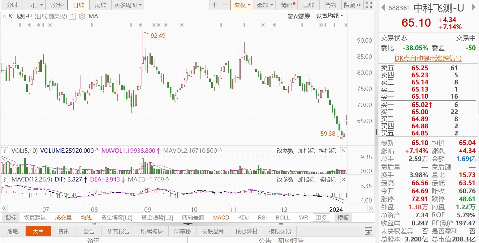 中科飞测(688361.SH)涨超7%,报65.1元,总市值208.3亿元。中科飞测公告,预计2023年度实现营业收入人民币8.5亿元到9亿元,较上年同期将增加3.41亿元到3.91亿元,同比增长66.92%至76.74%;预计实现归母净利润1.15亿元到1.65亿元,同比增长860.66%至1278.34%。2022年,公司实现营业收入5.09亿元,实现归母净利润1197.09万元。