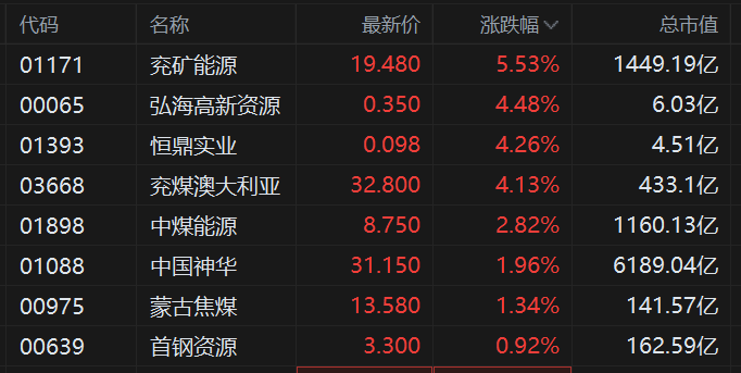 兖矿能源涨5.53%,股价刷新阶段新高且逼近历史高位,兖煤澳大利亚涨超4%,中煤能源涨近3%,中国神华涨近2%股价亦逼近上市高位。德邦证券最新报告指,2024年煤炭行业盈利或将同比增长、前低后高。此外,多家优质煤企控股股东陆续发布股份增持计划彰显信心,低资本开支下煤炭板块的高股息具有吸引力,且在中国特色估值体系持续推动下,企业价值进一步得到股东的重视。维持板块“优大于市”评级。