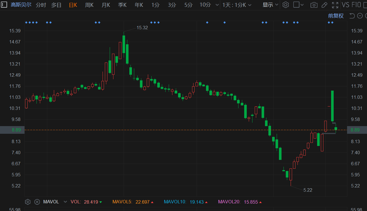 昨日大跌超9%的高斯贝尔(002848.SZ)再度下跌超6%,报8.9元,市值不足15亿元。昨日龙虎榜数据显示,“作手新一”为卖一席位,净卖出5175.62万元。上榜席位全天买入8594.86万元,卖出1.38亿元,合计净卖出5188.3万元。