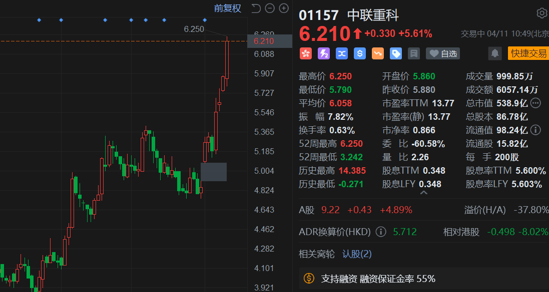 中联重科港股再度拉升涨超6%,4日连涨达20%,股价续刷阶段新高,中联重科A股亦涨超5%刷新阶段新高。日前公布的数据显示,3月销售各类挖掘机24980台,同比下降2.34%,其中国内15188台,同比增长9.27%,高于此前CME预期6%增速。东吴证券指出,3月挖机内销同比+9%超预期,旺季转正,更新周期渐近。工程机械设备更新周期或已临近,大规模设备更新系列政策有望助推市场回升。