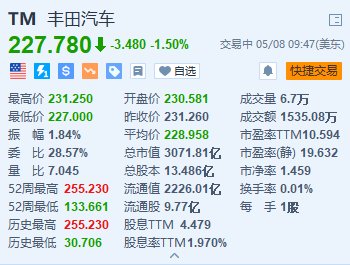 丰田汽车(TM.US)跌1.5%,报227.78美元。丰田公布截至3月31日的2024财年第四财季业绩,营收同比增长14%,达11.073万亿日元;净利润同比飙升80%,达到9976亿日元,超出分析师预测的7528.5亿日元。然而,丰田对于2025财年的指引较疲弱,预计2025年营业利润将下降19.7%,至4.3万亿日元,低于市场普遍预期的5.3万亿日元。该公司表示,该预测考虑了3800亿日元的“人力资本”投资,包括为供应商和经销商的劳动力成本提供支持,以及对其“多途径”战略的投资。