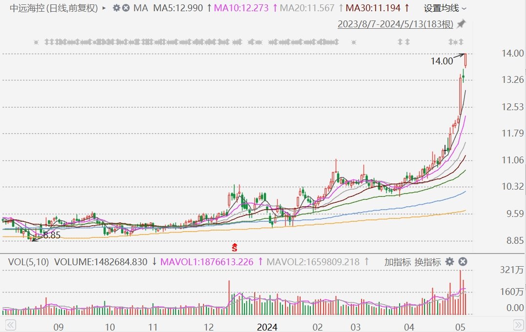 集运指数(欧线)主力合约飙升,带动港A两地海运股持续走强。其中,中远海控(601919.SH)涨近5%至14元,股价创2021年9月以来新高,年内累涨45%;中远海控(1919.HK)涨超6%至12.46港元,创2007年11月以来新高,年内累涨57%。集运指数(欧线)主力合约今早再创新高,一度飙升近14%报3976点,再创新高。