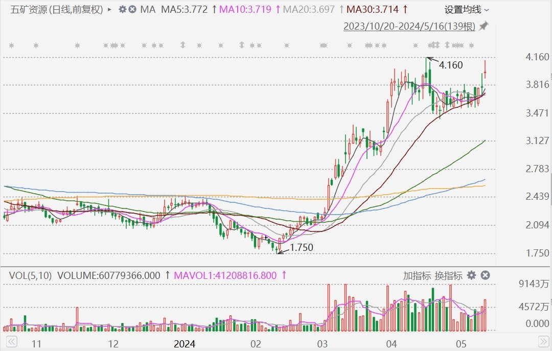五矿资源(1208.HK)盘初拉升涨近9%报4.12港元。消息面上,MSCI官网北京时间5月15日凌晨公布其半年度指数调整结果,其中,五矿资源获纳入MSCI中国指数,且权重提升幅度领先,本次调整结果将于5月31日收盘后生效。