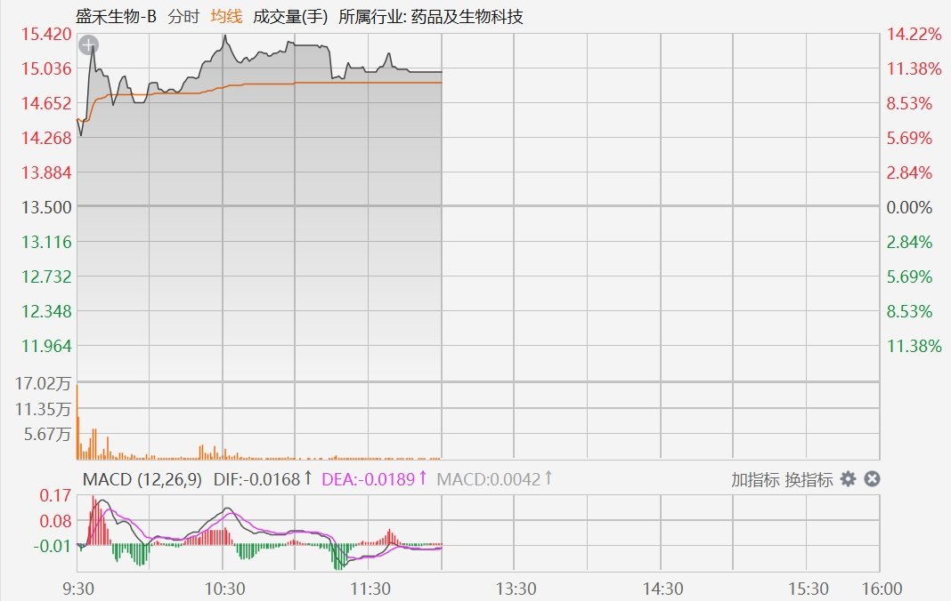 “抗体细胞因子第一股”盛禾生物-B(2898.HK)今日首日在港挂牌上市,逆势高开高走,上午盘中最高涨14.22%报15.42港元,截至半日收涨11.11%报15港元,成交3357万港元,最新市值23.5亿港元。该股IPO价格为13.5港元/股,此次IPO净筹3.9亿港元。