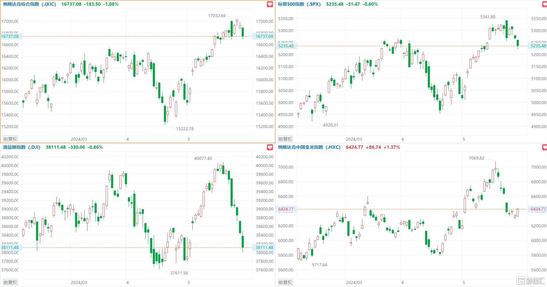 美股三大指数集体收跌,道指跌0.86%,纳指跌1.08%,标普500指数跌0.6%,热门科技股多数下跌,英伟达、微软跌超3%,谷歌跌超2%,特斯拉涨超1%。