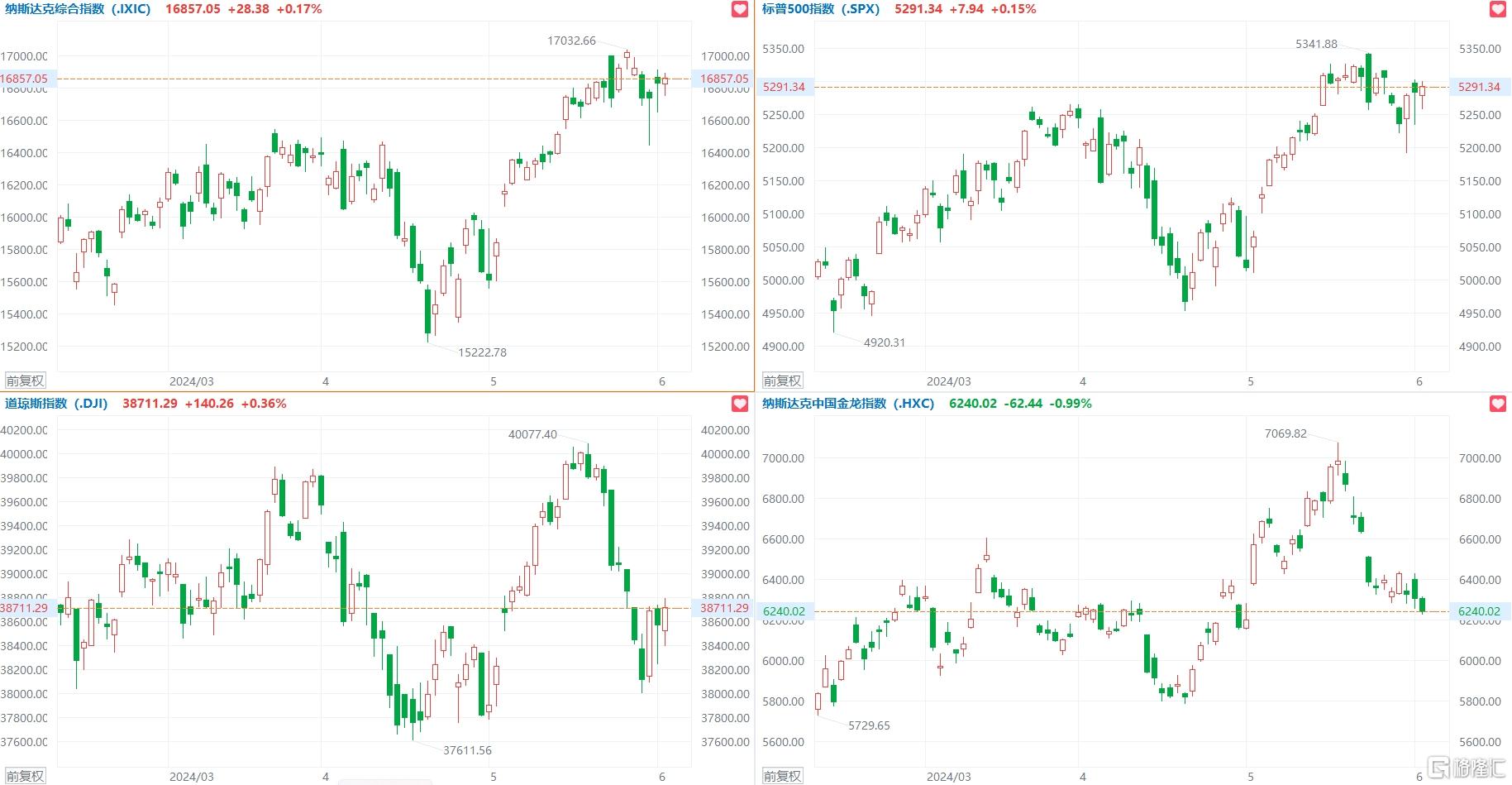 美股三大指数均小幅收涨,道指涨0.36%,纳指涨0.17%,标普500指数涨0.15%。英伟达涨超1%,续创历史新高,总市值2.86万亿美元。亚马逊、谷歌、微软、苹果小幅上涨;特斯拉、奈飞、英特尔、Meta小幅下跌。美股铜板块大幅下跌,Ivanhoe Electric跌超8%,麦克莫兰銅金跌4.5%。