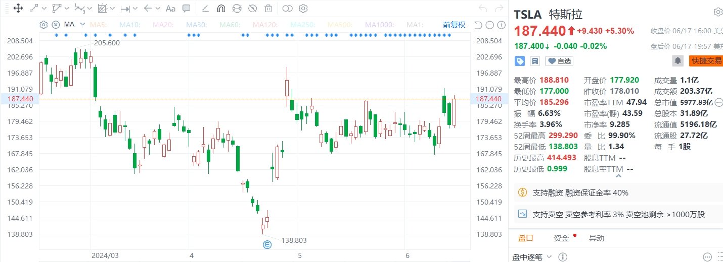 特斯拉(TSLA.US)收涨超5%,报187.44美元,总市值5977.83亿美元。消息上,马斯克在社交媒体上发文称正在致力于特斯拉的“宏图篇章四”,并称将会是史诗一般(的计划)。作为这件事情的前情提要,马斯克在去年3月的投资者日上发布了《宏图篇章第三阶段》,希望通过终端电气化、可持续的发电和储能,为实现全球可持续能源经济提供可行方案。