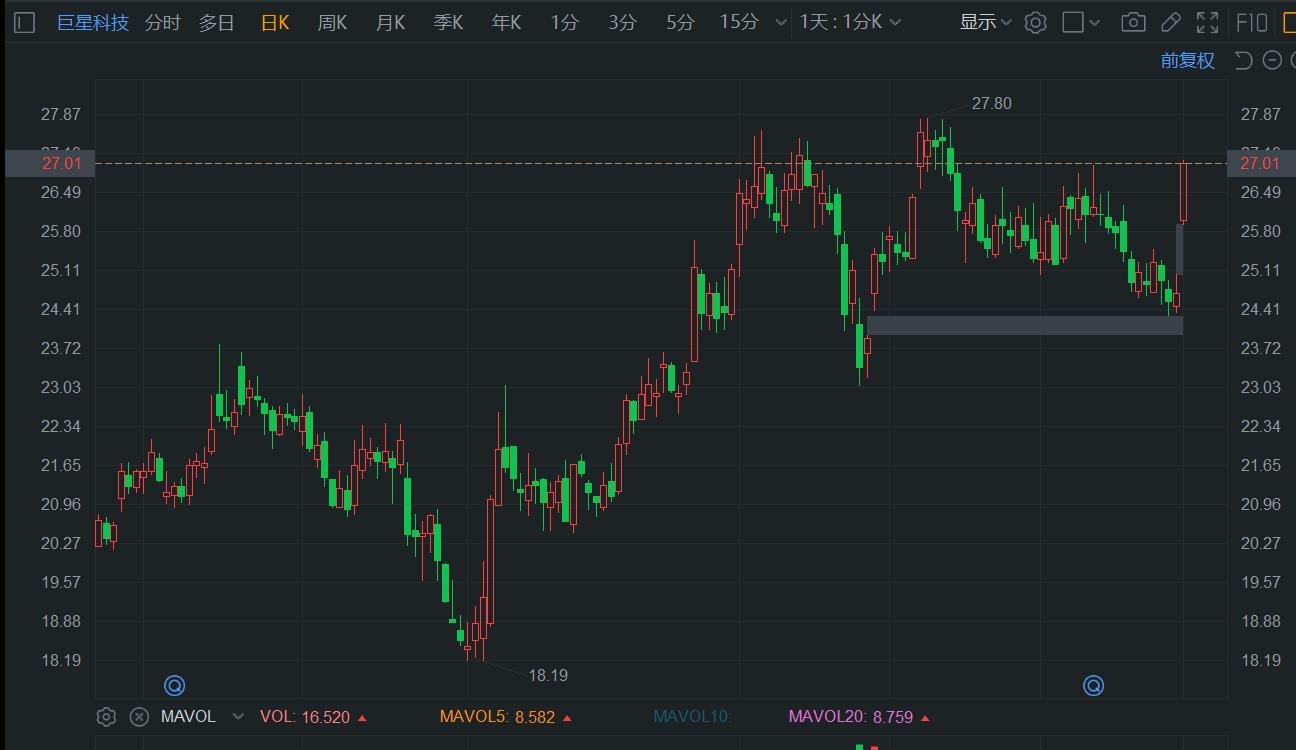 巨星科技(002444.SZ)大幅拉升逼近涨停,报27.01元,总市值324.7亿元。上周五盘后公告,2024年1月1日至6月30日期间,公司预计归属于上市公司股东的净利润为10.91亿元至11.78亿元,同比增长25%-35%。另外,公司日前获得发明专利授权:一种耐磨自润滑材料及其制备方法和在气动工具中的应用。