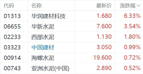港股水泥股走强,华润建材涨超6%,华新水泥涨超3%,西部水泥涨近2%。据水泥网引述市场消息,长三角沿江熟料价格,计划加价每吨50元,水泥预计跟升每吨50元。据悉,本轮水泥熟料价格上涨,因水泥业自律及错峰生产支撑,长三角计划7月至8月分别停产10天,减产幅度近三成。
