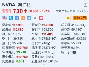 英伟达(NVDA.US)涨超7.7%,报111.73美元。消息面上,摩根士丹利发表研究报告指,考虑到英伟达近期遭到市场抛售,虽然具体原因未明,但相信可为有兴趣的投资者带来良好入市机会,因此重新将其列为首选股,盈利预测及目标价未变,评级为“增持”,目标价为144美元。