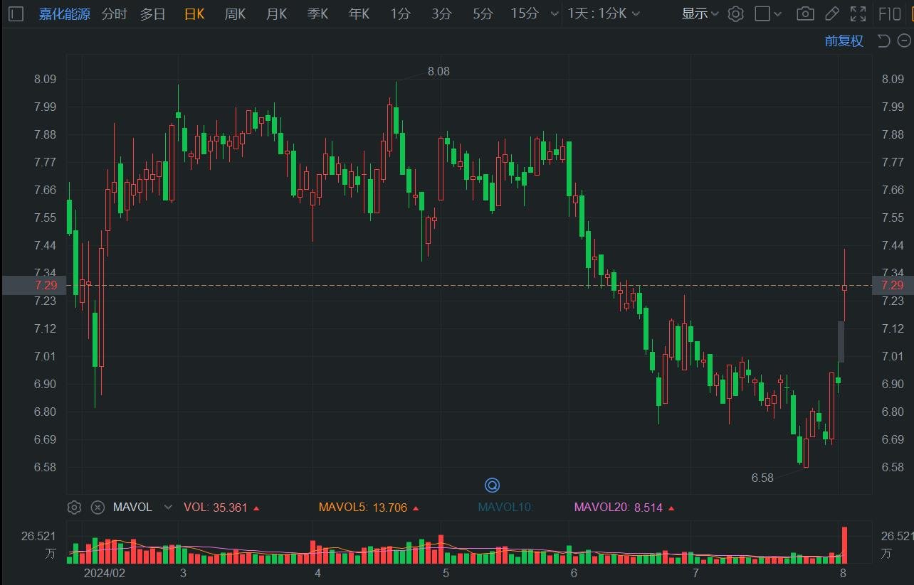 嘉化能源(600273.SH)近日自低位持续反弹,盘中一度冲高超7%,午间收涨5.5%报7.29元,总市值重回百亿元。消息上,公司2024年中报净利润为5.30亿元、同比较去年同期下降15.41%。其中第二季度,公司单季度主营收入25.3亿元,同比上升16.42%;归母净利润3.19亿元,同比上升32.2%。另外,公司拟使用不超2.6亿元新建设一台超高压/高压煤粉锅炉。