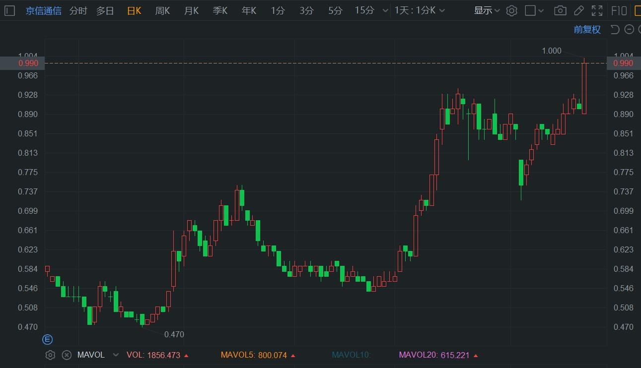 京信通信(2342.HK)大幅上涨超10%,股价重回1港元关口,并创下近10个月高位,总市值超27亿港元。消息上,公司拟8月22日(明日)举行董事会会议批准中期业绩。此前公司曾发盈警:预计亏损1.6亿港元,原因是运营商资本开支放缓。京信通信表示,公司对全球运营商市场、企业专网市场以及通信科技的发展前景保持乐观态度。