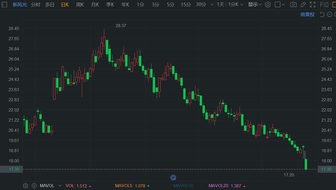 新风光(688663.SH)盘初跌超9%,报17.2元刷新阶段新低,总市值跌破25亿元。公司昨日盘后公告,上半年营业收入7.00亿元,同比增长9.46%;归属于上市公司股东的净利润7581.20万元,同比下降2.95%。截至2024年6月30日,总负债12.72亿元,较去年同期增长10.06%,应收账款达8.85亿元。此外,公司控股股东变更为山东能源集团有限公司,实际控制人仍为山东省国资委。