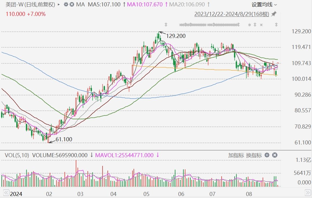 美团-W(3690.HK)高开7%报110港元;隔夜美股市场美团(ADR)收涨3.7%报28.06美元,折算成港股市场价格为109.4港元/股。