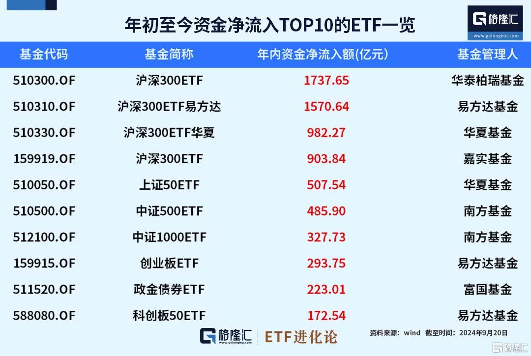 年初至今超8000亿资金净流入ETF市场。其中,4只沪深300ETF年内吸金5194亿,华夏上证50ETF资金净流入超507亿,南方中证500ETF、南方中证1000ETF资金净流入分别为485.9亿、327.7亿。