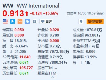 减肥解决方案供应商WW International(WW.US)涨超15.6%,报0.91美元。消息面上,WW International周二表示,已将复合司美格鲁肽添加到其减肥方案中,为符合条件的会员提供增强型临床体重管理产品。这一新选择旨在在GLP-1药物如Ozempic和Wegovy持续短缺之际,提供负担得起的替代方案。