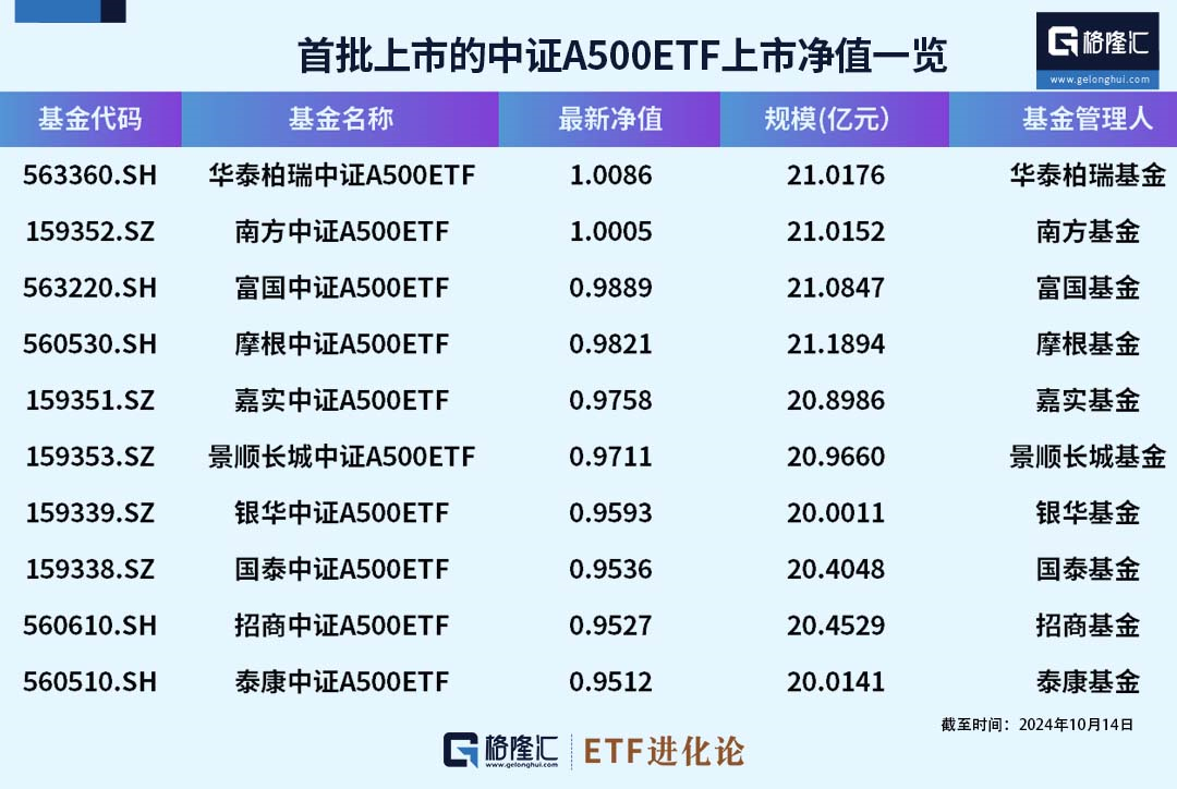 首批10只中证A500ETF将于今日集体上市