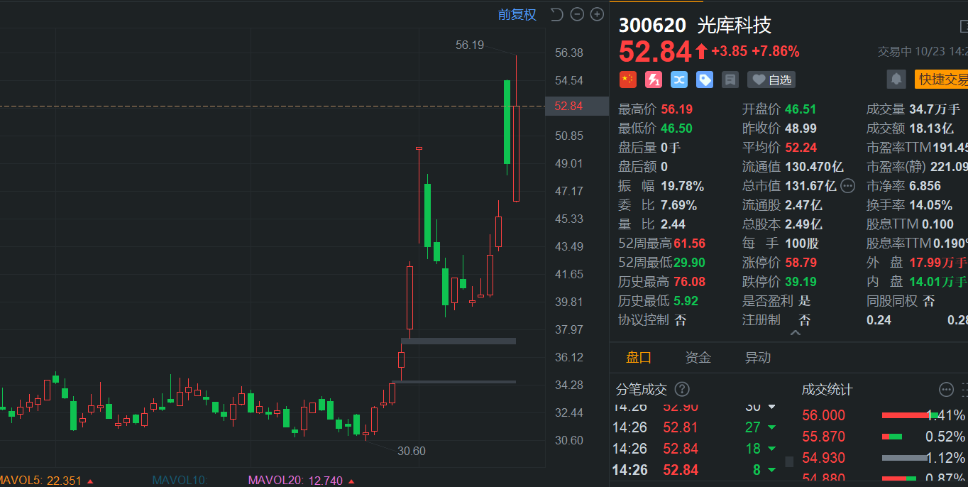 通讯设备制造商光库科技(300620.SZ)盘中一度涨超14%,高见56.19元创近7个月新高,总市值132亿元。公司昨日盘后公告,第三季度公司实现营业收入为3.18亿元,同比增长71.33%;归属于上市公司股东的净利润为2547万元,同比增长70.2%。据悉,公司拥有全球一流的技术团队并掌握了包括芯片设计、芯片制程、封装和测试等核心技术,具备了开发高达800Gbps 及以上速率的薄膜铌酸锂调制器芯片和器件的关键能力。(格隆汇)